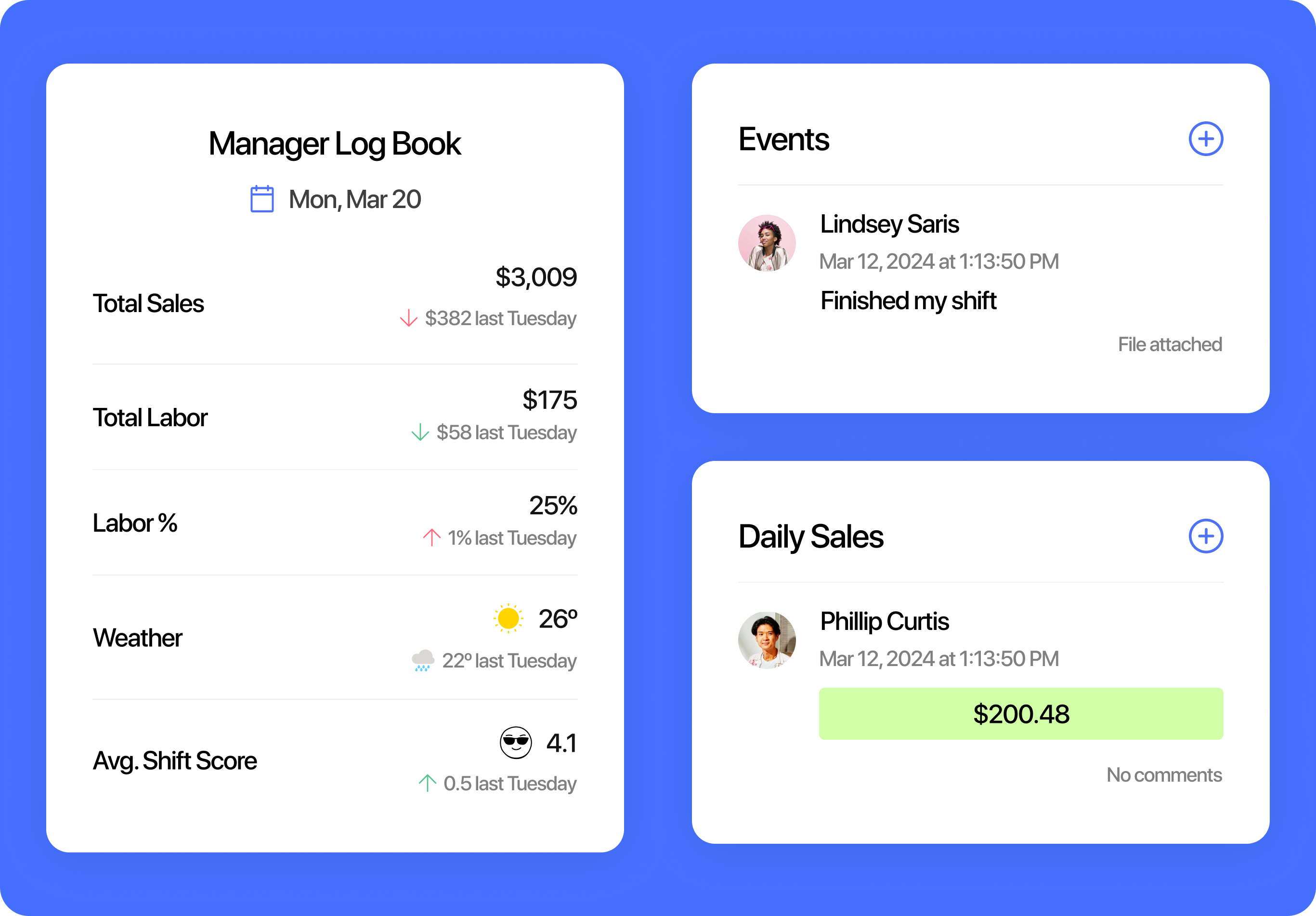Save notes and add shift details for other managers.